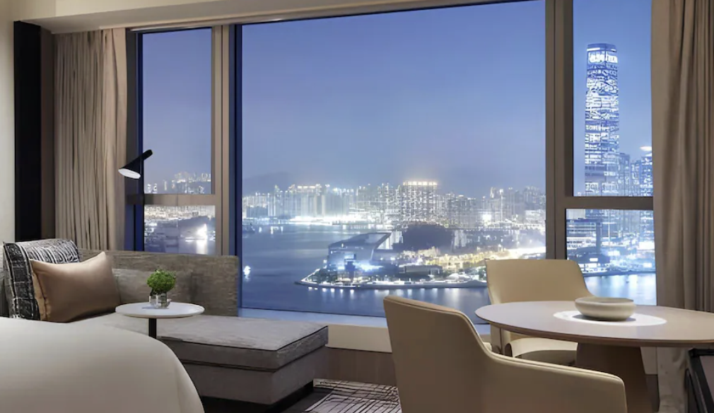 객실은 대형 창문 너머로 빅토리아 하버가 한눈에 들어와요.