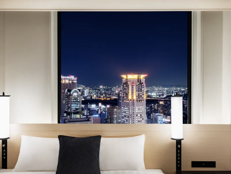 창문에서는 오사카 도심 야경을 감상할 수 있어